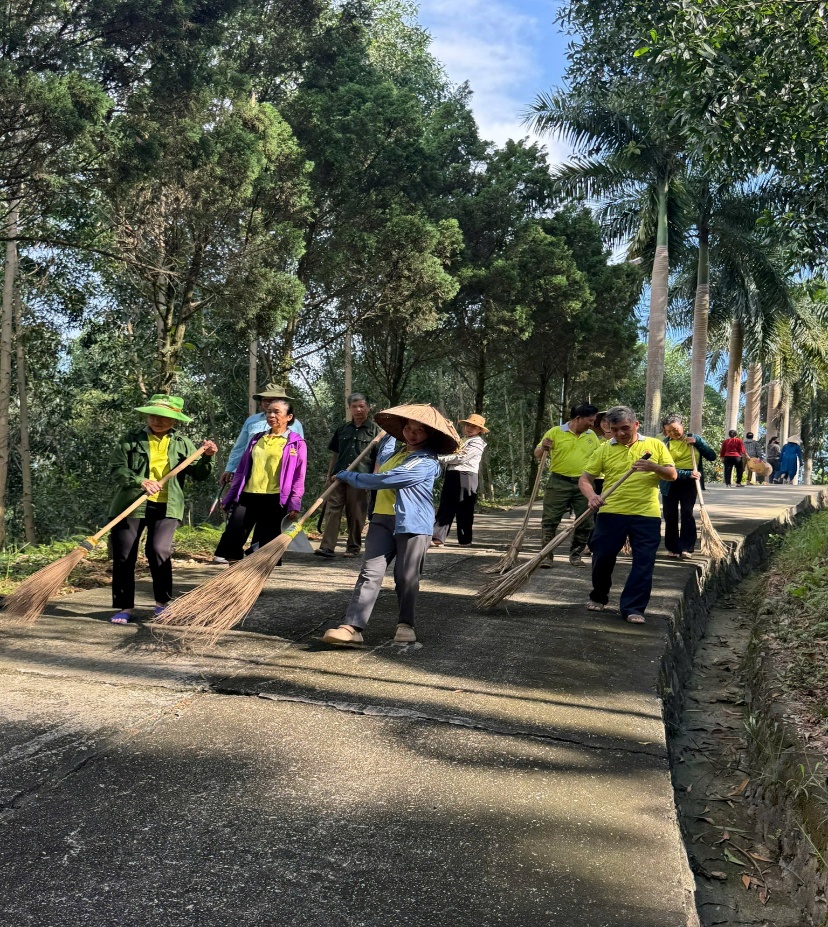 (Hoạt động quét dọn, vệ sinh tại Đền thờ liệt sỹ Phú Lương của cán bộ, hội viên nông dân xã Phú Lương)